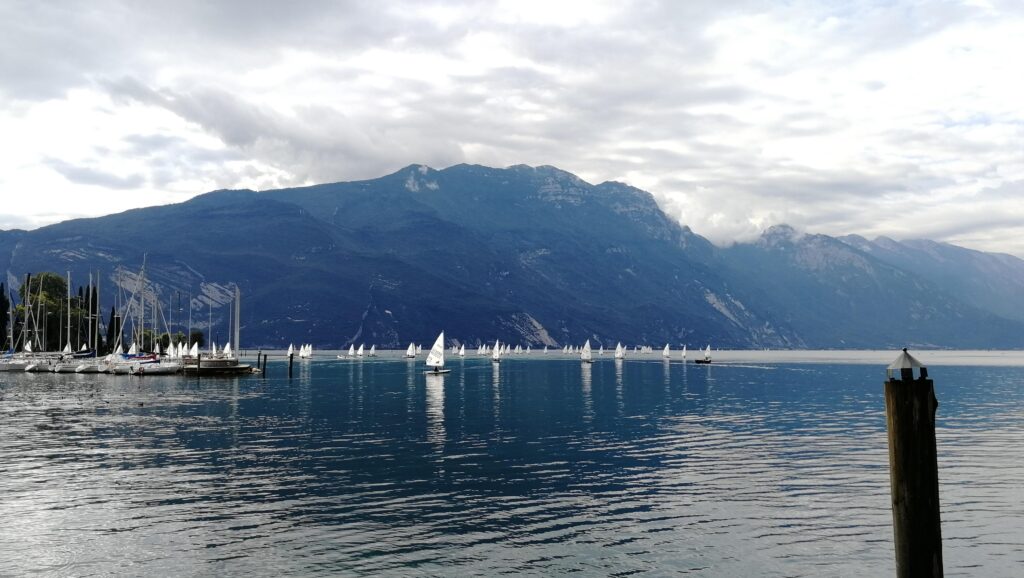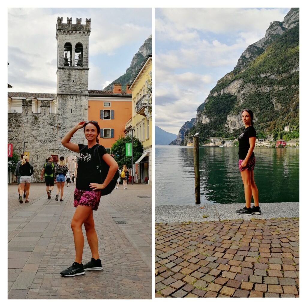 První zastávkou bylo městečko Riva del Garda. Prohlédli jsme si ho v ranním klidu a ospalosti, prošli se po pobřežní promenádě, udělali fotky a pozorovali vyplutí plachetnic na závod z místního přístavu. Krásný výhled musí být od pevnosti Bastione, která se tyčí asi 150 metrů nad městem na svazích hory Cima Sat, a ke které vede malá panoramatická lanovka.