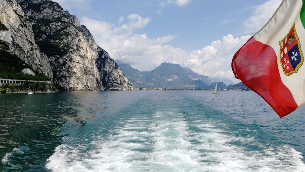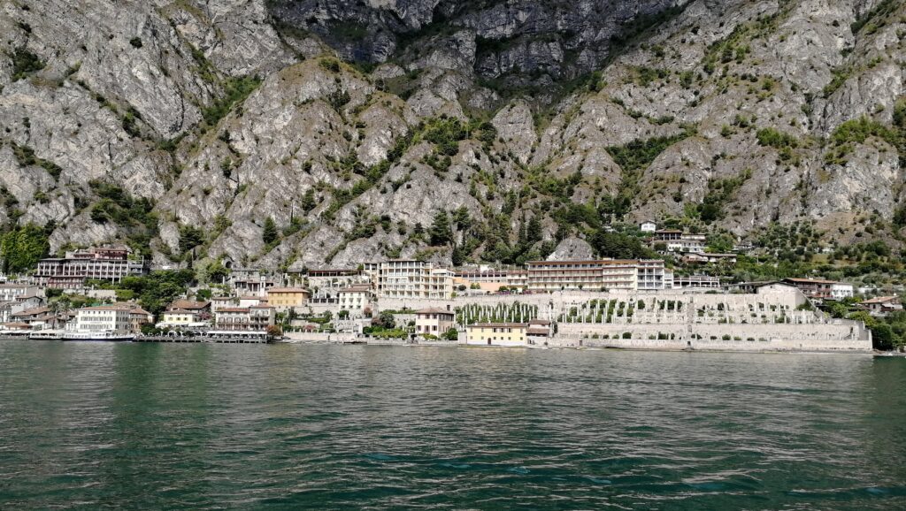 Lodí jsme pak pluli do další zastávky, Limone sul Garda. Po cestě jsme na březích obdivovali strmé skály s historickými stezkami a viděli i vodopád.