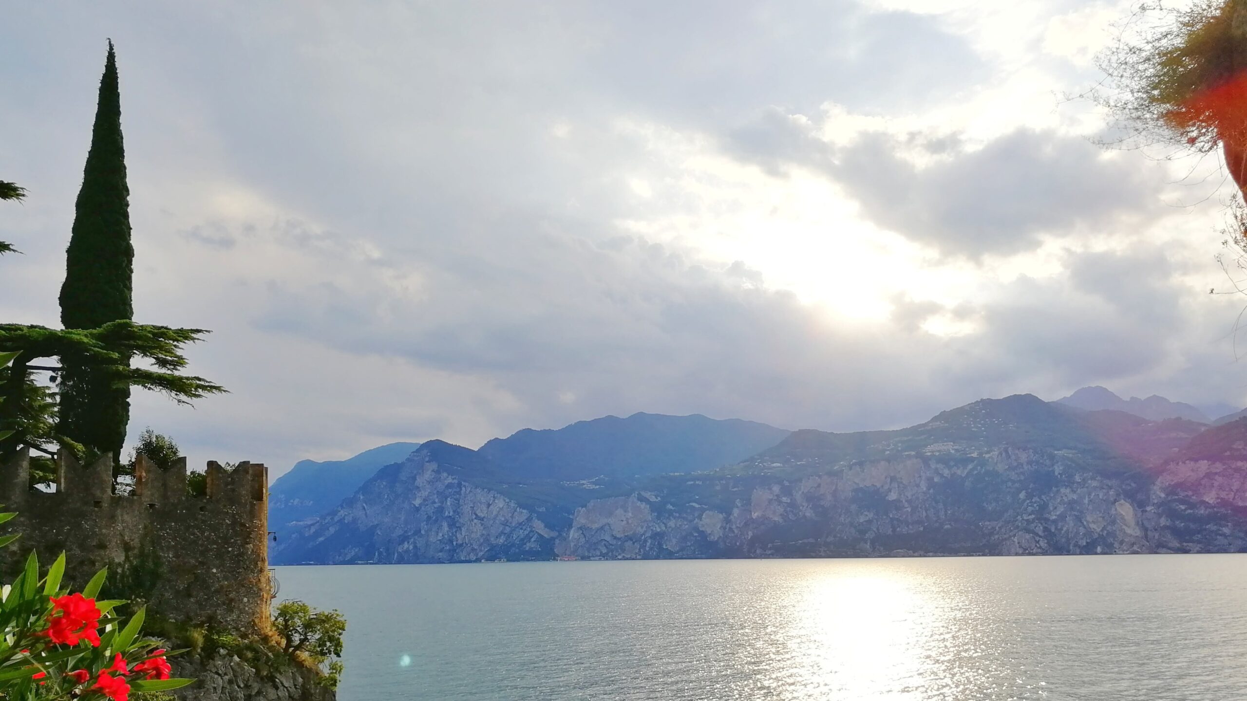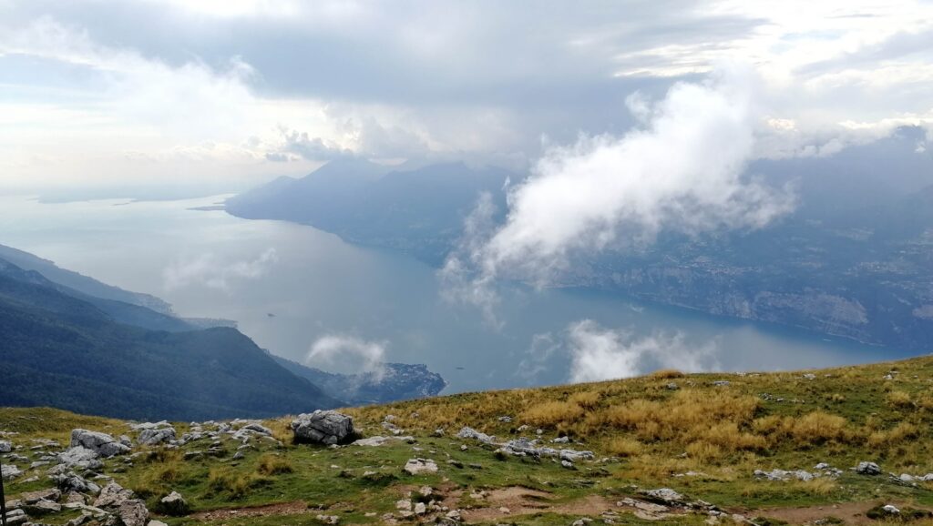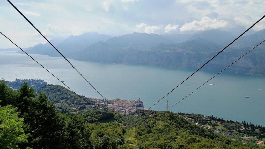 Do městečka, v jehož uličkách se můžete nějakou dobu klidně jen tak toulat a kochat se, jsme se podívali až později. Hned po připlutí jsme totiž došli k lanovce a s jednou mezizastávkou (pozor na to, vystoupíte z první lanovky a hned navazuje další, tu máte v ceně:) vyjeli panoramatickou kabinou až na horu Monte Baldo (1760 m n.m.). Kabina se po cestě pomalu otáčí kolem dokola:) Nahoře byl krásný výhled na jezero i okolní hory a teplota 7 stupňů. Vezměte si tedy nějakou vrstvu oblečení navíc.